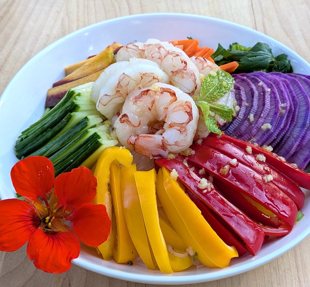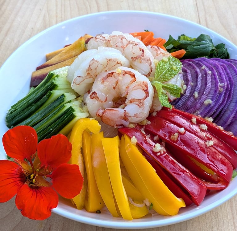 Delicately cooked with a hint of five spice and paired with roasted fennel, purple cauliflower, sweet red onion, and other seasonal vegetables